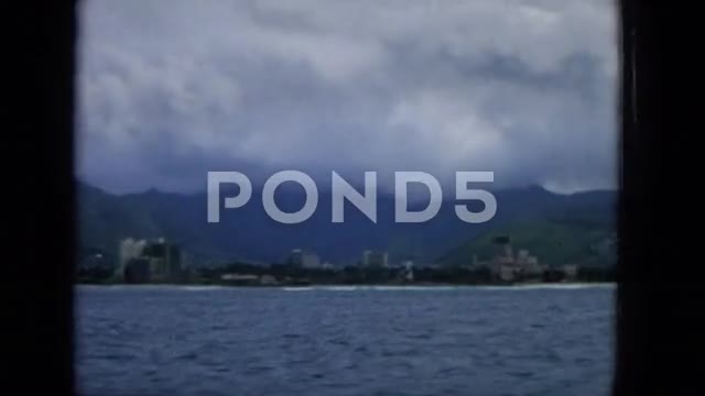 1965: A vintage 8mm home movie captures the U.S. Coast Guard conducting early morning patrols along the Hawaiian coastline. The footage shows personnel in uniform overseeing a shipment operation near the water, with smoke rising from industrial equipment and gear being transported. A man watches from a vantage point, possibly monitoring the activity, while a float and antenna suggest communication or survey operations. The scene reflects a moment of coordinated effort and vigilance in a tropical setting, blending military duty with island life. This authentic archival clip offers a nostalgic glimpse into mid-1960s Hawaii, ideal for historical documentaries, editorial content, or retro-themed projects.