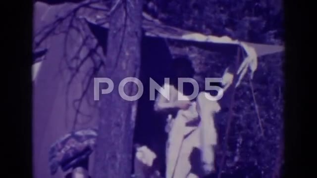 1938: A serene vintage 8mm home movie clip capturing a fast-flowing river in Oroville, California, with clear blue skies and natural light illuminating the rocky shoreline. The rushing water creates gentle waves against the banks, showcasing the untouched wilderness of Northern California during the late 1930s. This authentic archival footage offers a nostalgic glimpse into mid-century American nature, perfect for historical documentaries, editorial content, or retro-themed projects. The film’s grainy texture and natural color palette reflect the era’s home movie aesthetic, preserving a moment of quiet beauty from a bygone time.